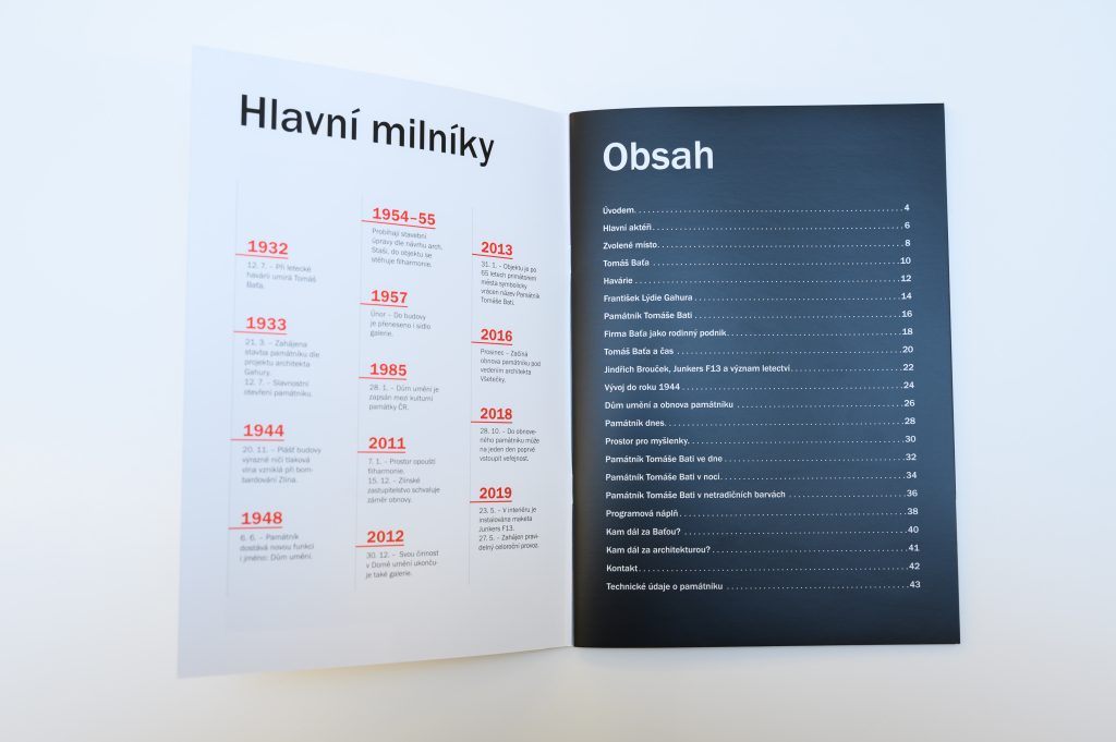 Od února 2026 je v Infopointu Památníku Tomáše Bati k dostání nový tištěný průvodce památníkem. Publikace ve formátu A5 na 44 stranách přináší stručné a přehledné seznámení s historií budovy i s osobnostmi, které jsou s ní spjaty. Text doplňuje řada současných i historických fotografií. Vychází v české, anglické a německé jazykové verzi.